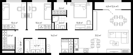 Площадь от 31 м2