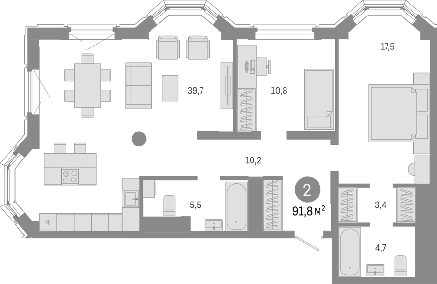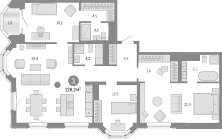 У квартир на первых и последних этажах есть террасы. Они расширяют жилое пространство и дают возможность разнообразить досуг. На террасу выходят большие окна в пол, что даёт квартире больше естественного света.